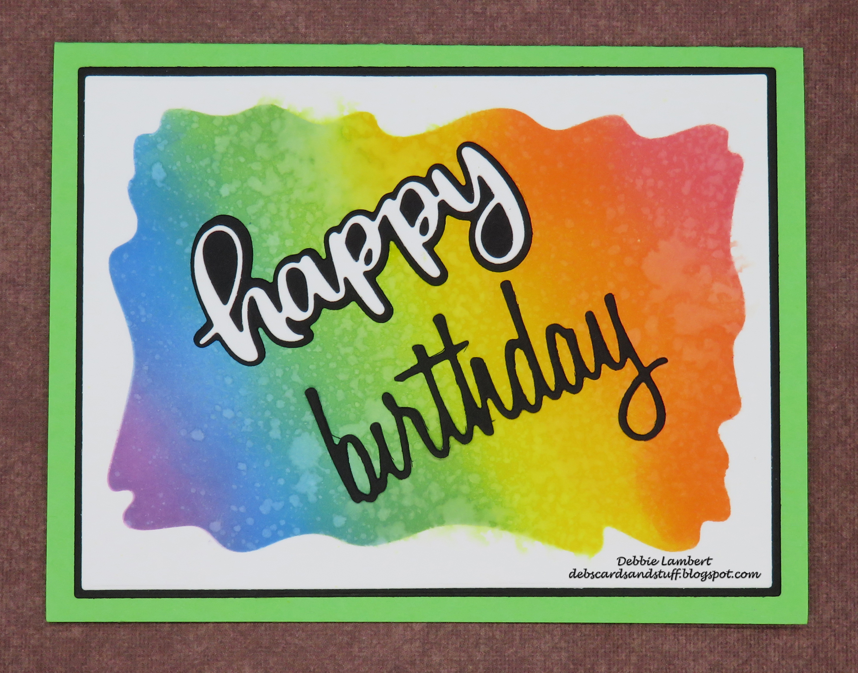 I finally got to use a new stencil for this card. Its one that I've had for a few months - Watercolor Wash from My Favorite Things. I love the irregular edges and I can see using this one often. In this case, I decided to use a rainbow of colors and make a birthday card.